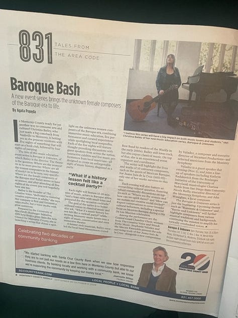 On October 7, 2024 the series opened with a deep dive into the music and stories of Late Renaissance and Baroque Composers Vittoria Aleotti and Francesca Caccini as well as a look into the current state of representation in Classical Music.