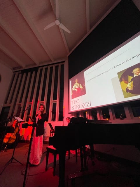 Christina followed with a modern interpretation of Che Si Può Fare, blending traditional phrasing with improvisation alongside the continuo, reimagining Strozzi’s timeless questions through a contemporary and collaborative lens.