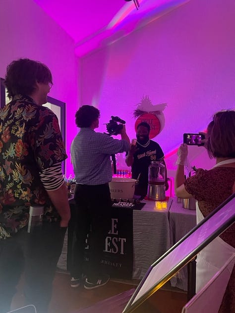 Room decor was curated by Clusterfunk Creative, the smell of local wild Lavender filled the room, and video projections of historical insights were displayed on the walls like a museum installation. Guests were welcomed to enjoy small bites from Chic Charcuterique and Specialty Cocktails from Uncle Nearest Whiskey, all themed around the era and history of the two composers.