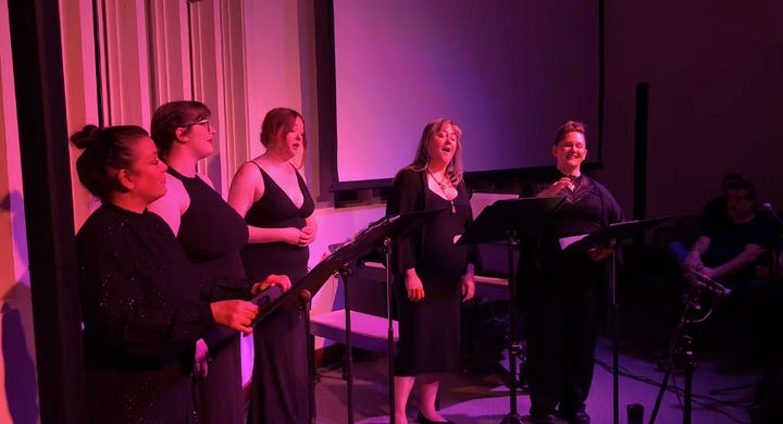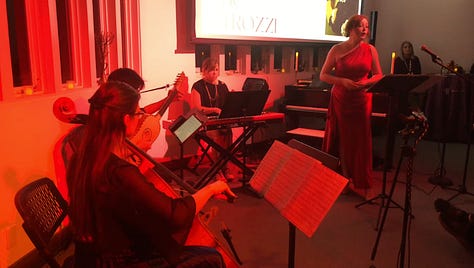 This moment underscored a key theme of the evening—heritage in mentorship, and the ways in which artistic lineage shapes the future of music. Ella is a local High School Student and studies voice with Event Co-Producer, and Performer, Sophia Gonzalez. Ella had the opportunity to sing with a continuo for the first time and share her gorgeous talents with a fully engaged, intimate, audience.